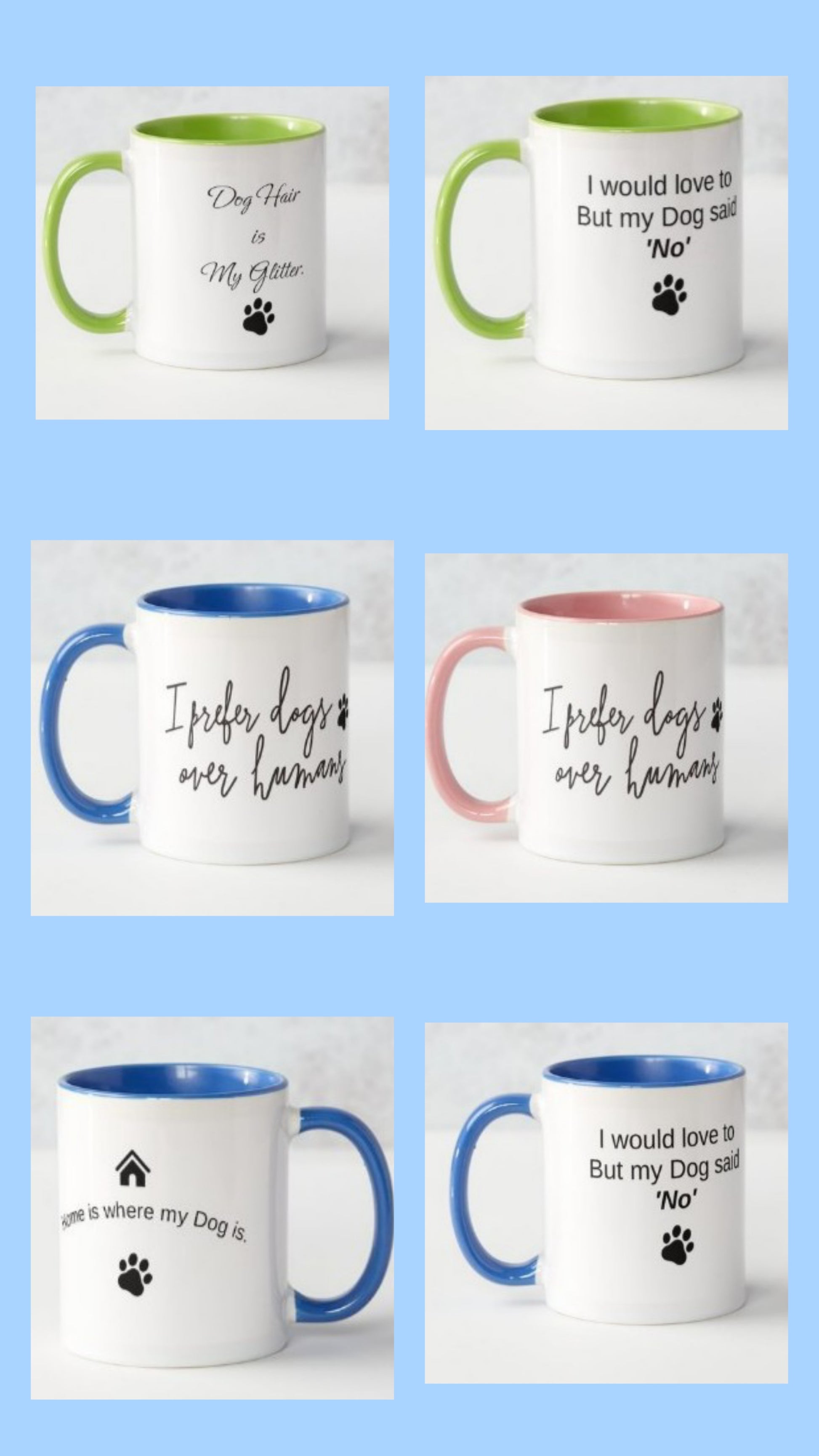 Discover my collection of mugs featuring amusing dog-themed quotes, available in a charming selection of colors. These mugs are both dishwasher and microwave safe, making them practical for everyday use. They also make a perfect gift for dog lovers. Don’t forget to explore other items shown in the same image for more great options.